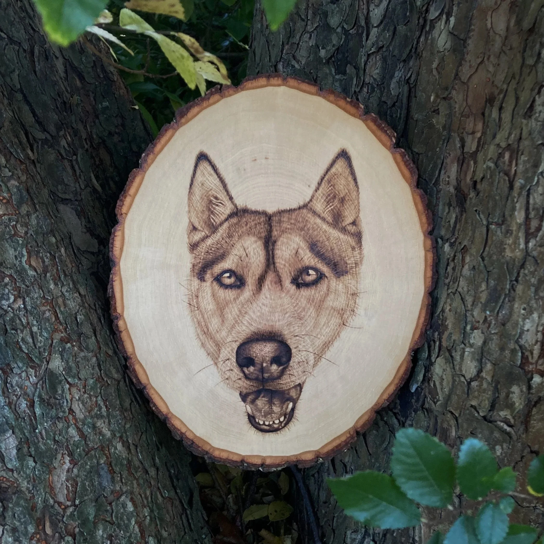 Pyrography is a very unique and rustic art form that involves the process of burning designs into surfaces, typically wood, with a handheld heat tool. Lauren’s main style is realism and all of her works are created by technique of only one single tip that is used to make all of her burnt designs. Normally, multiple interchangeable tips such as shading, fine tip, ball tip pens and more are used in the creation of pyrography artwork. However, since Lauren only uses one fine tip pen for every technique, this requires advanced skill beyond the norm for pyrography. As you can tell, this art form allows for little to no mistakes in which takes much skill, patience and precision. Pyrography is also a calming and therapeutic-like art form that cannot be rushed making it a slower process than other art forms. The scent of burning wood gives that extra special warm and natural touch to creating with this unique art form.